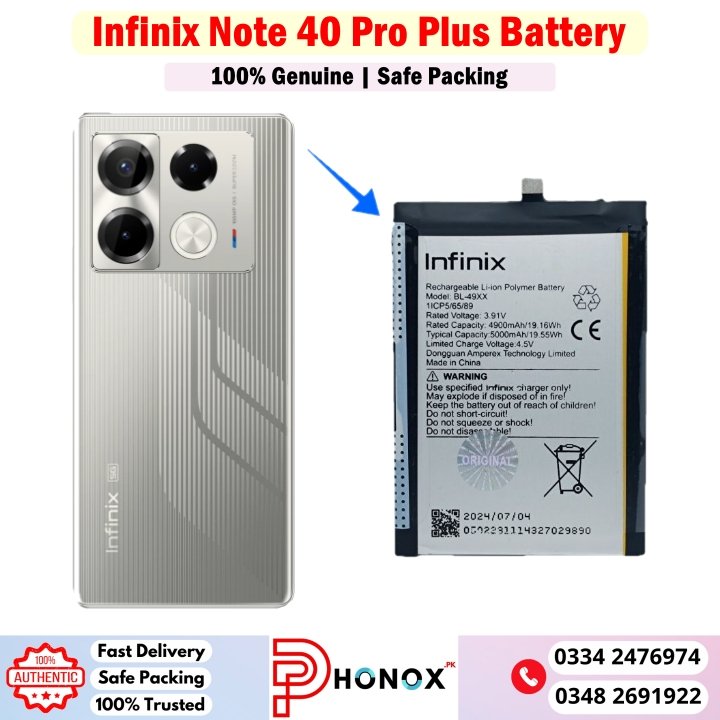 Looking For Infinix Note 40 Pro Plus Battery In Pakistan At Cheap Price? You’ve Came To The Right Place! Phonox.Pk Offers Huge Variety Of Smartphones Batteries At Reasonable Prices. From exceptional service to unbeatable quality, there’s no shortage of reasons why our customers keep returning!