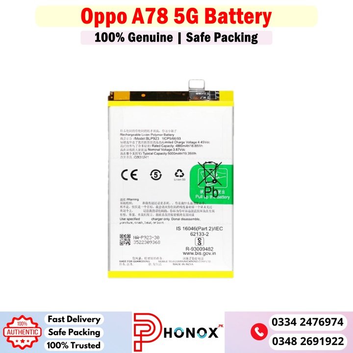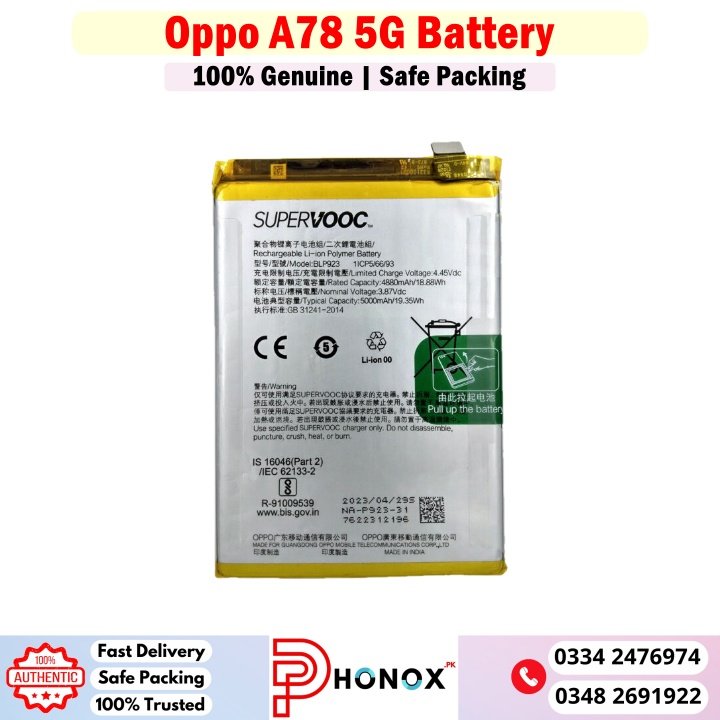 Oppo A78 5G Original Battery Price In Pakistan: