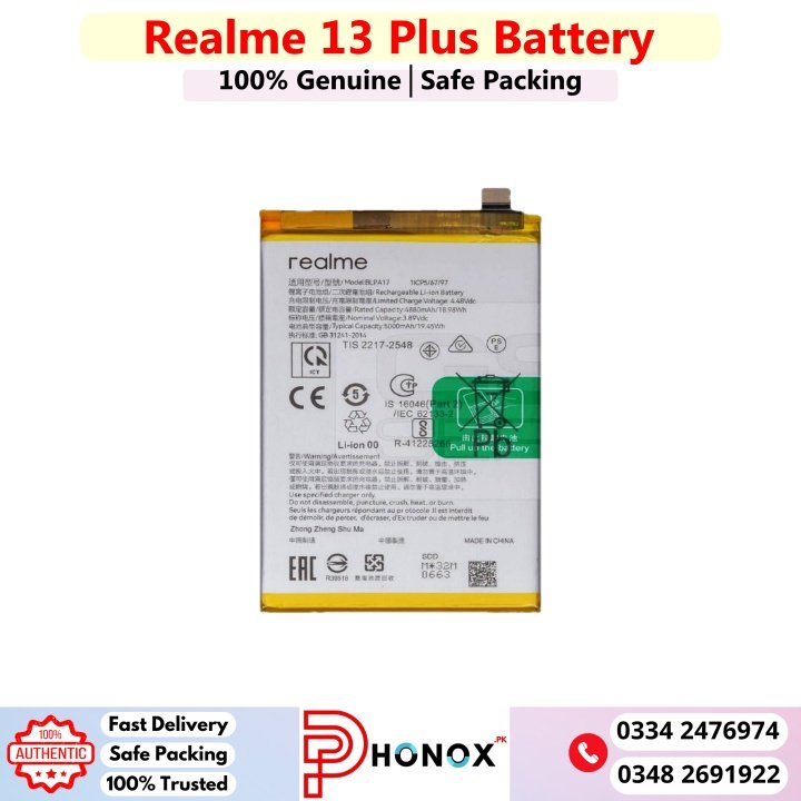 Looking For Realme 13 Plus Battery In Pakistan At Cheap Price? You’ve Came To The Right Place! Phonox.Pk Offers Huge Variety Of Smartphones Batteries At Reasonable Prices. From exceptional service to unbeatable quality, there’s no shortage of reasons why our customers keep returning!